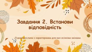 Завдання 2. Встанови відповідність. З’єднай рослини з характерними для них осінніми змінами.