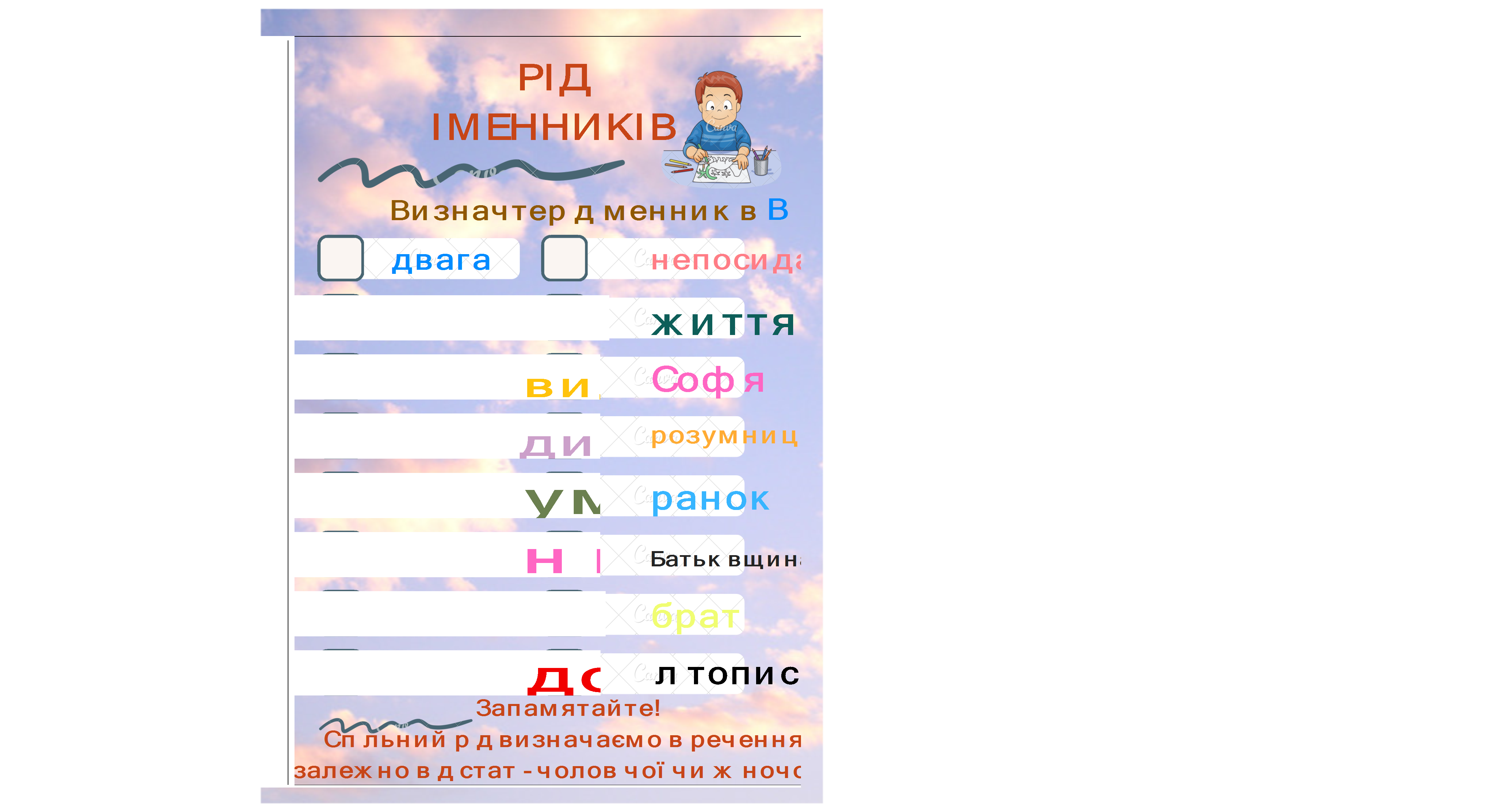 Тема. Іменник. Загальне значення “ Чар Зафарбуйте - правильн ,