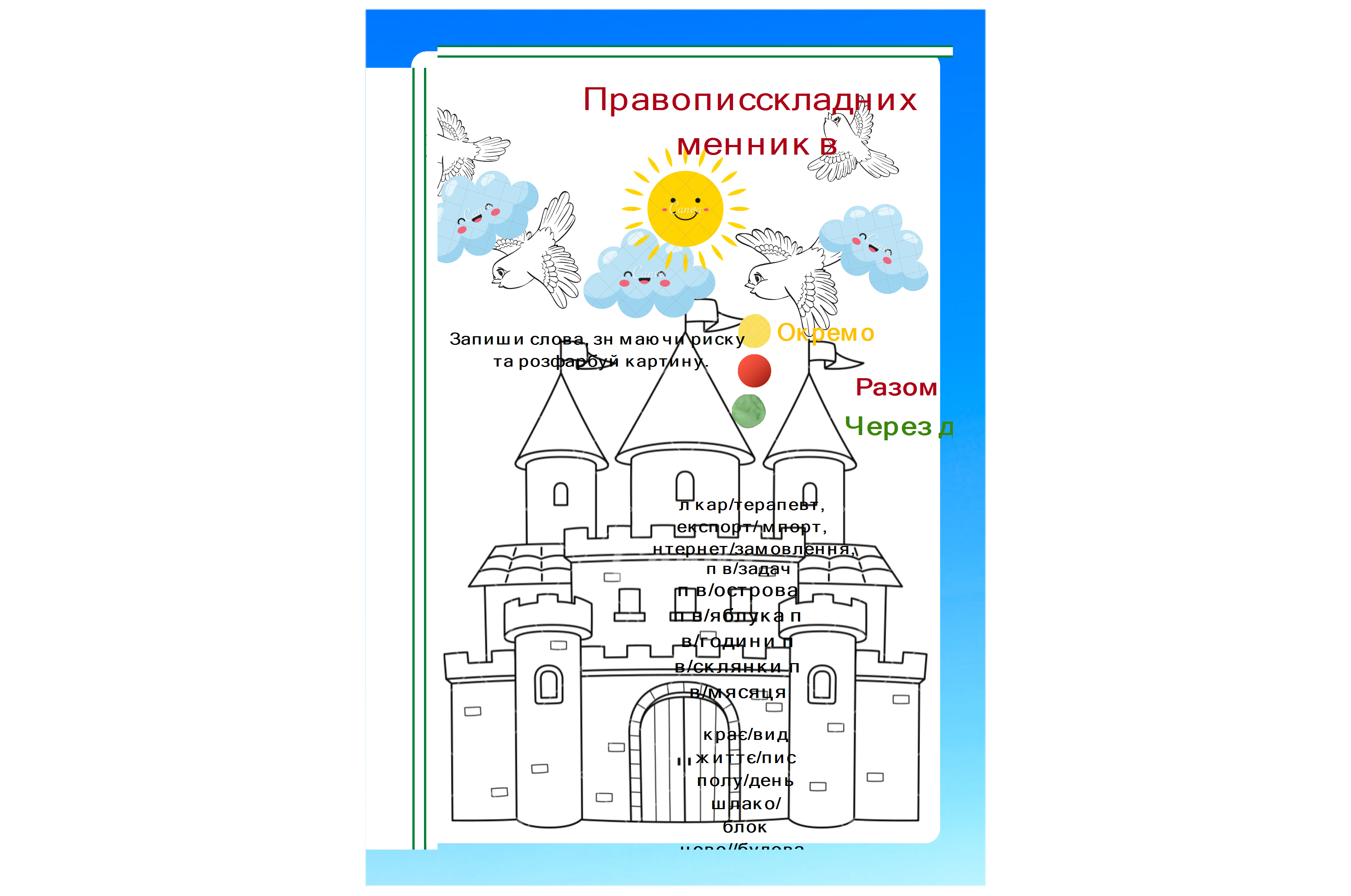 продумана, оформлена в дпов дно до в кових особливостей та творчих зд бностей учн в, м стить яскрав люстрац ї та р зноман тн методи роботи. Ігри “Так -н ”, розмальовки,